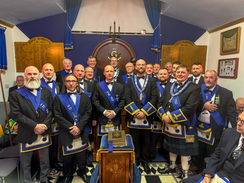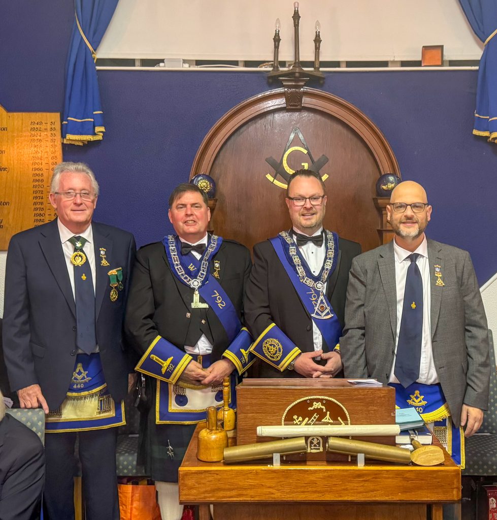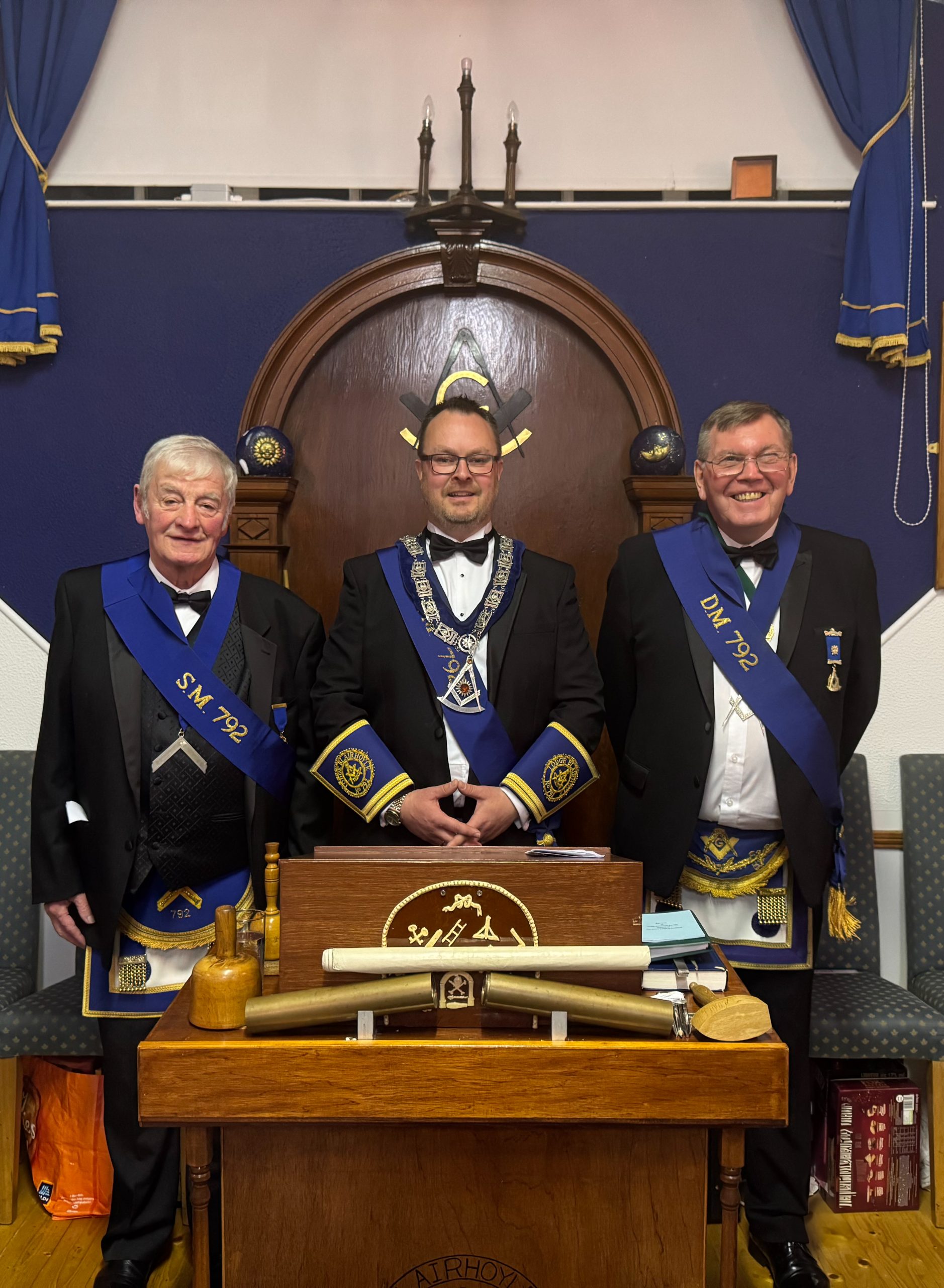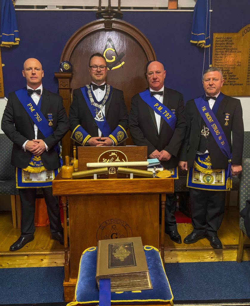 A first class Installation was led by Installing Master Bro. Andrew Paterson P.M. and expertly assisted by Bro. Douglas Wilson P.M. of 792 alongside Bro Ralph Teasdale P.M. of Lodge Ancient Stirling No. 30.